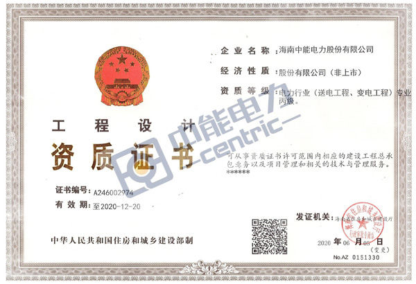 工程設(shè)計(jì)資質(zhì)證書